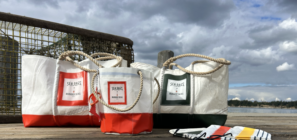 Recycled sails meet rugged fishermen’s bibs in a collaboration born from Maine’s working waterfront. Tough. Sustainable. Unmistakably authentic.