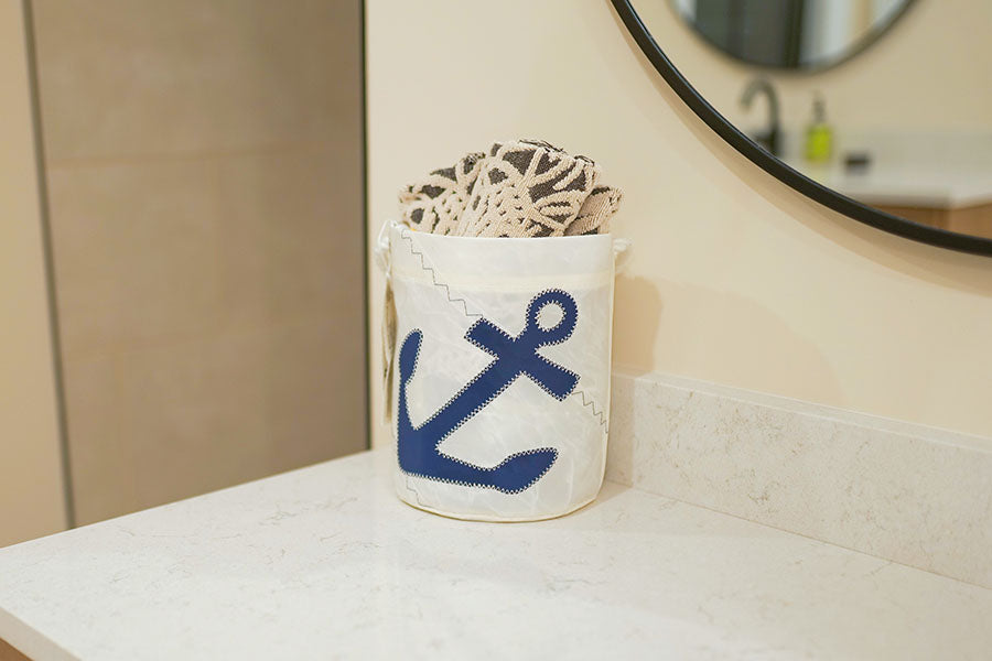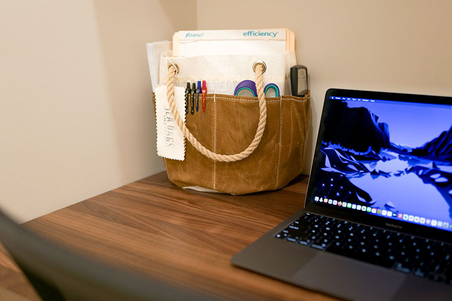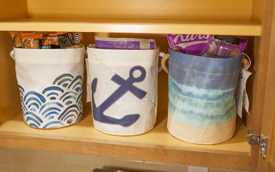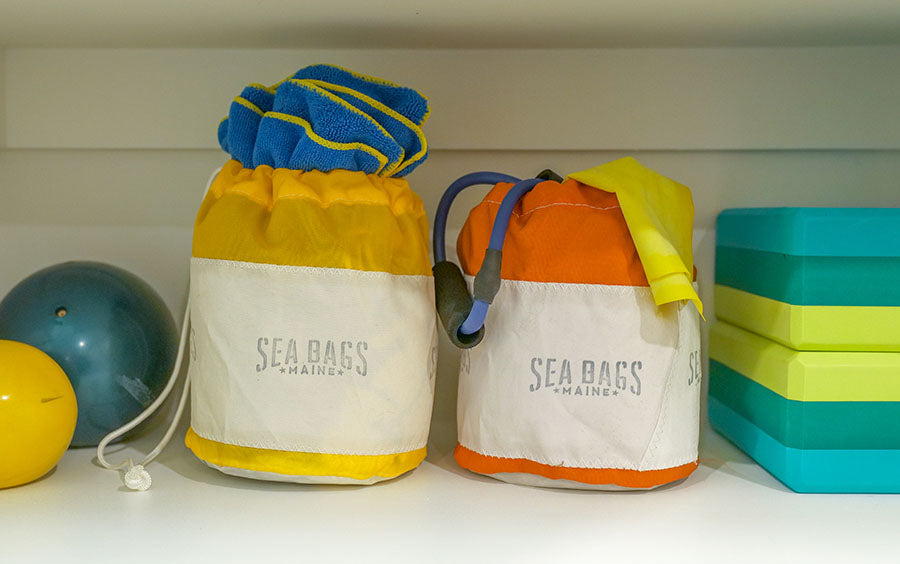 It's no secret that gym closets can sometimes seem impossible to keep clean. For hard-to-stack supplies, we've started using Ditty Bags to keep everything neat and contained. We use them for sweat towels, resistance bands, and any other workout accessory that would otherwise pile up on shelves or in the corner of your gym space. These bags can hold a lot, and cinch at the top easily for on-the-go workouts.