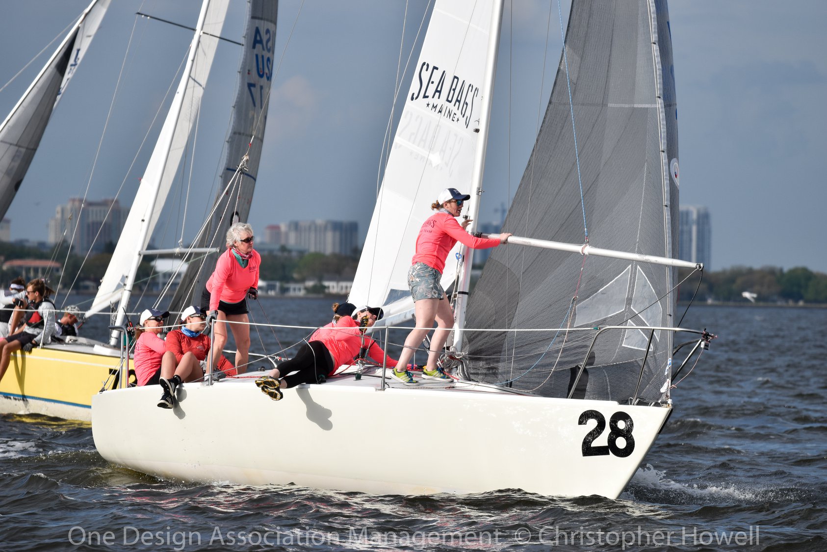 Friday, March 1st, was the start of the three-day J/24 Midwinter Championship in Tampa, Florida. It was a perfect day—blue skies and 80 degrees—but calm winds delayed the start of the first race. The Sea Bags Women's Sailing Team and twenty-eight other teams waited anxiously. Suddenly, just after noon, six-knot winds kicked up. Crews representing the US, Japan, and Canada, jockeyed for best positions at the starting line often just inches away from each other. Our team was confident—they had something to prove.