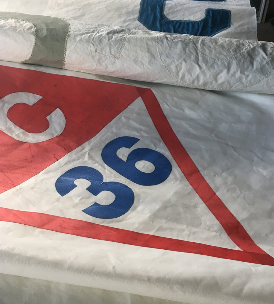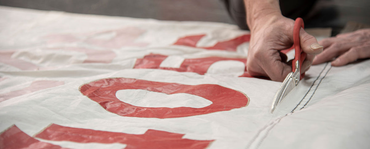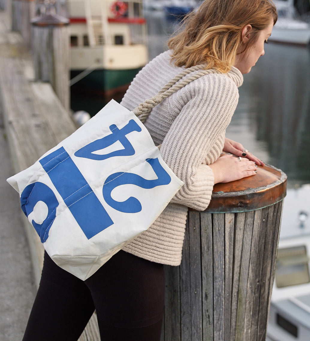 The sail panels reserved to craft our Auction Totes are the rarest pieces to come through our shop. Our Vintage Auctions are a weekly event that run from Friday to Sunday, and allow customers to place bids on these truly special, one-of-a-kind pieces.