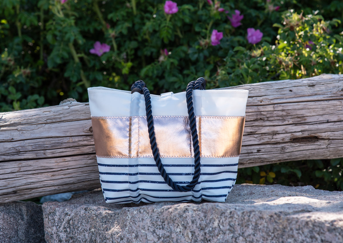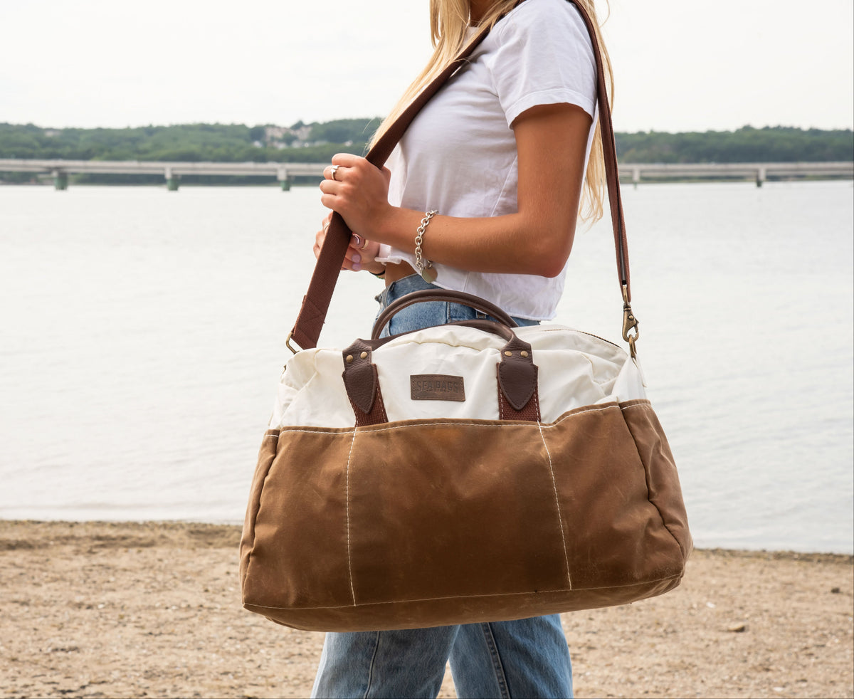 These totes are great for multiple uses! You can't beat the heavy material and quality construction. The beach tote version has plenty of roomy pockets for all of your essentials and more, and the clasps keep it all together with no problem. I love to purchase USA made goods because this kind of quality is worth every cent.