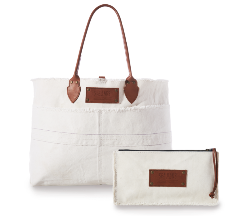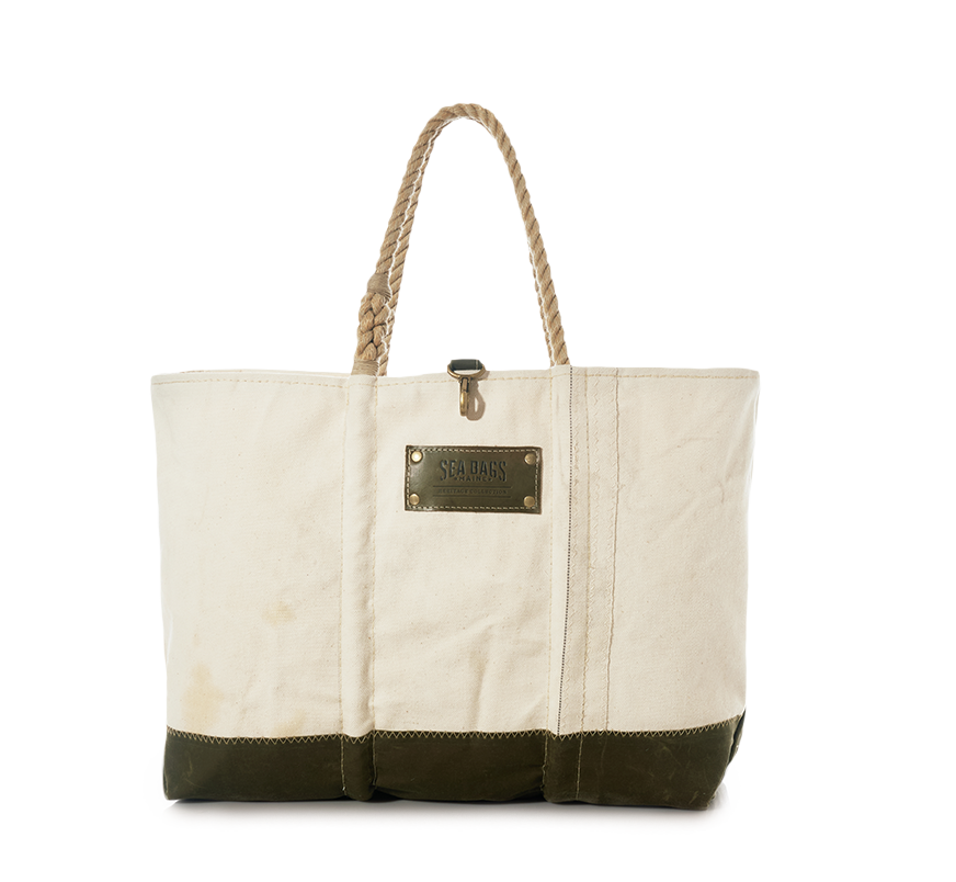 Authentic canvas sails were rescued and recycled to craft a just a few of these rugged totes. The original cream color was preserved, allowing the texture and original sail maker's stitches to add character. The Sea Salt Canvas bags were unlike any other and celebrated the origins of sailing when cotton canvas was the preferred material.