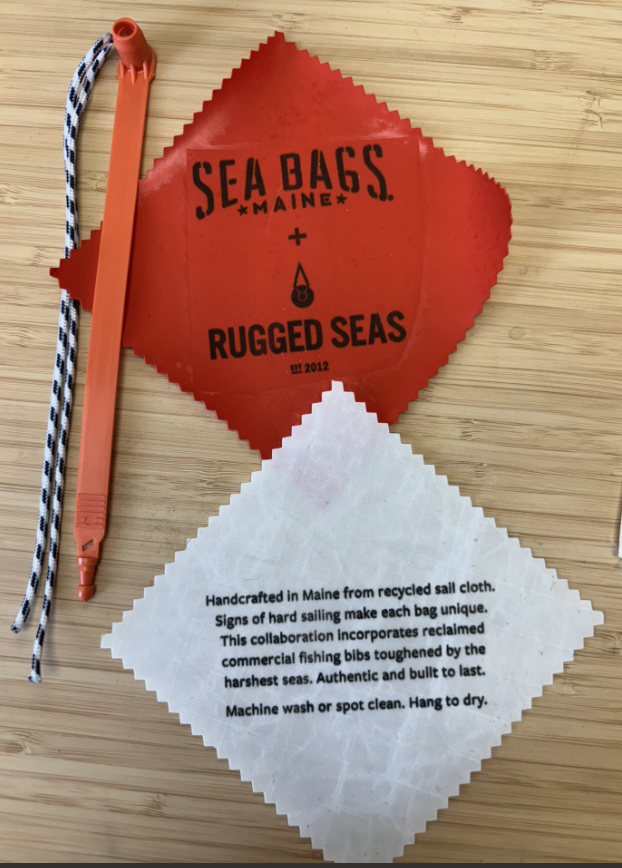 Rugged Seas is a brand that’s as tough as the people who live and work in Maine’s coastal communities. Fishermen’s bibs are heavy-duty waterproof overalls designed to keep fishermen dry and protected at sea and are made in a wide range of colors. Much like sails, bibs wear out from days of hard use at sea, but even when bibs can’t be worn any more, the material still has plenty of life. Instead of going to landfills, Rugged Seas uses their deep connection to commercial fisheries to recover these bibs. Then, the fishermen’s bibs are gathered in Maine to be cleaned, cut, and sewn locally into durable products that last for years.