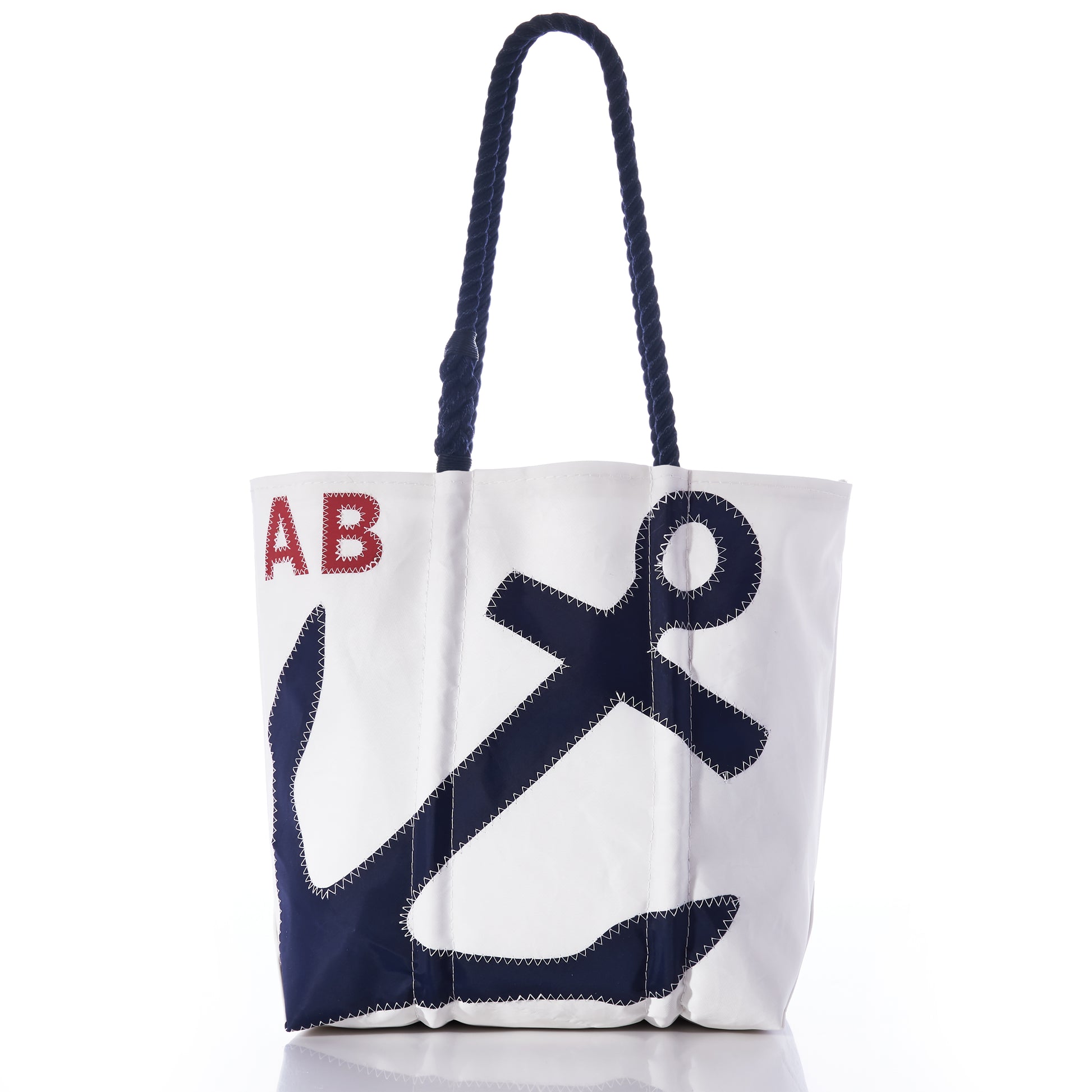 Our beloved anchor appliqué design can now be personalized with two initials of your choice. It's a gift that offers so many possibilities. Give each person in your wedding party a gift that recalls your special day, while thanking each individually. Keep your family's belongings organized on trips and game days with a personal tote for each member. Of course, you'll want one for yourself! Made from recycled sailcloth with a hand-spliced rope handle.