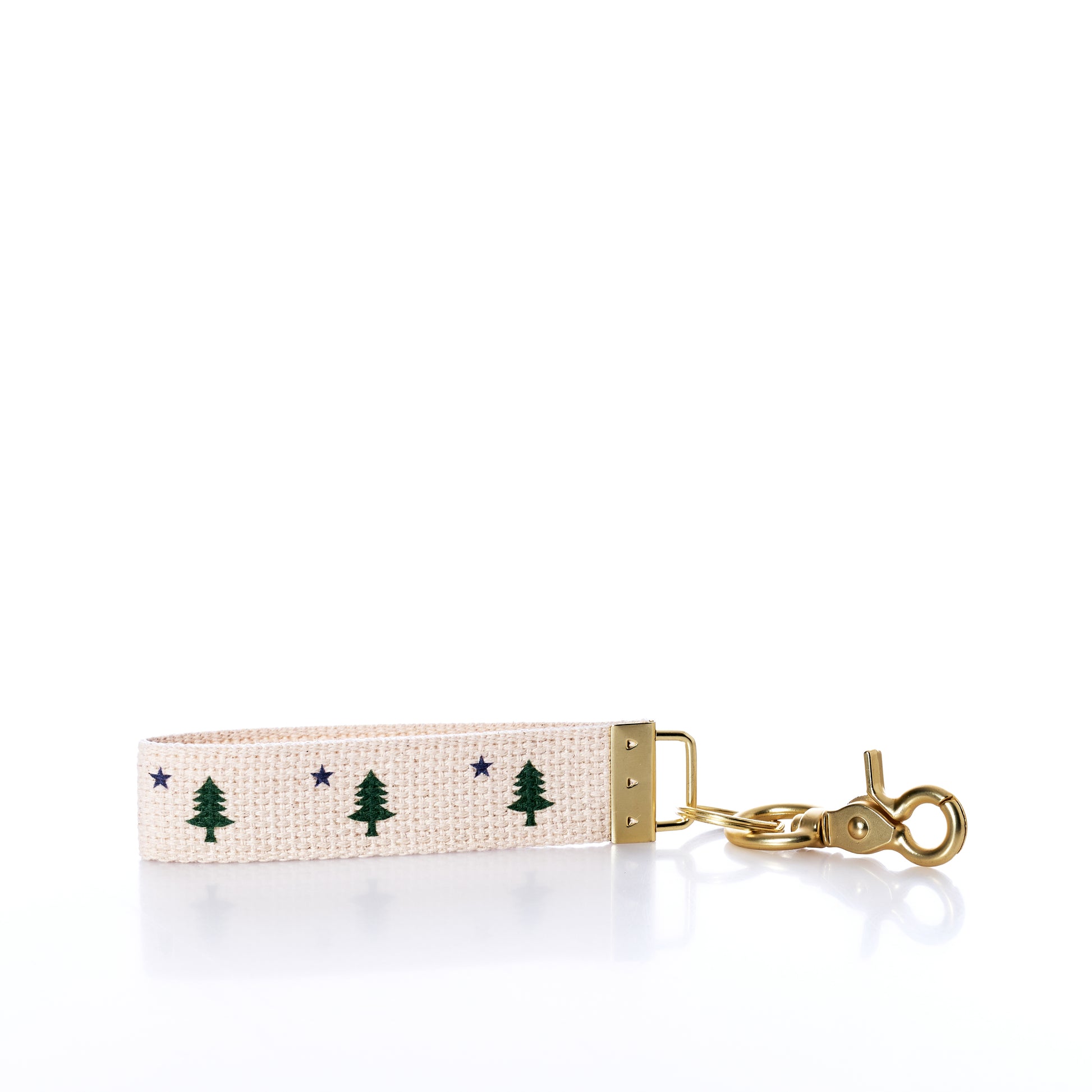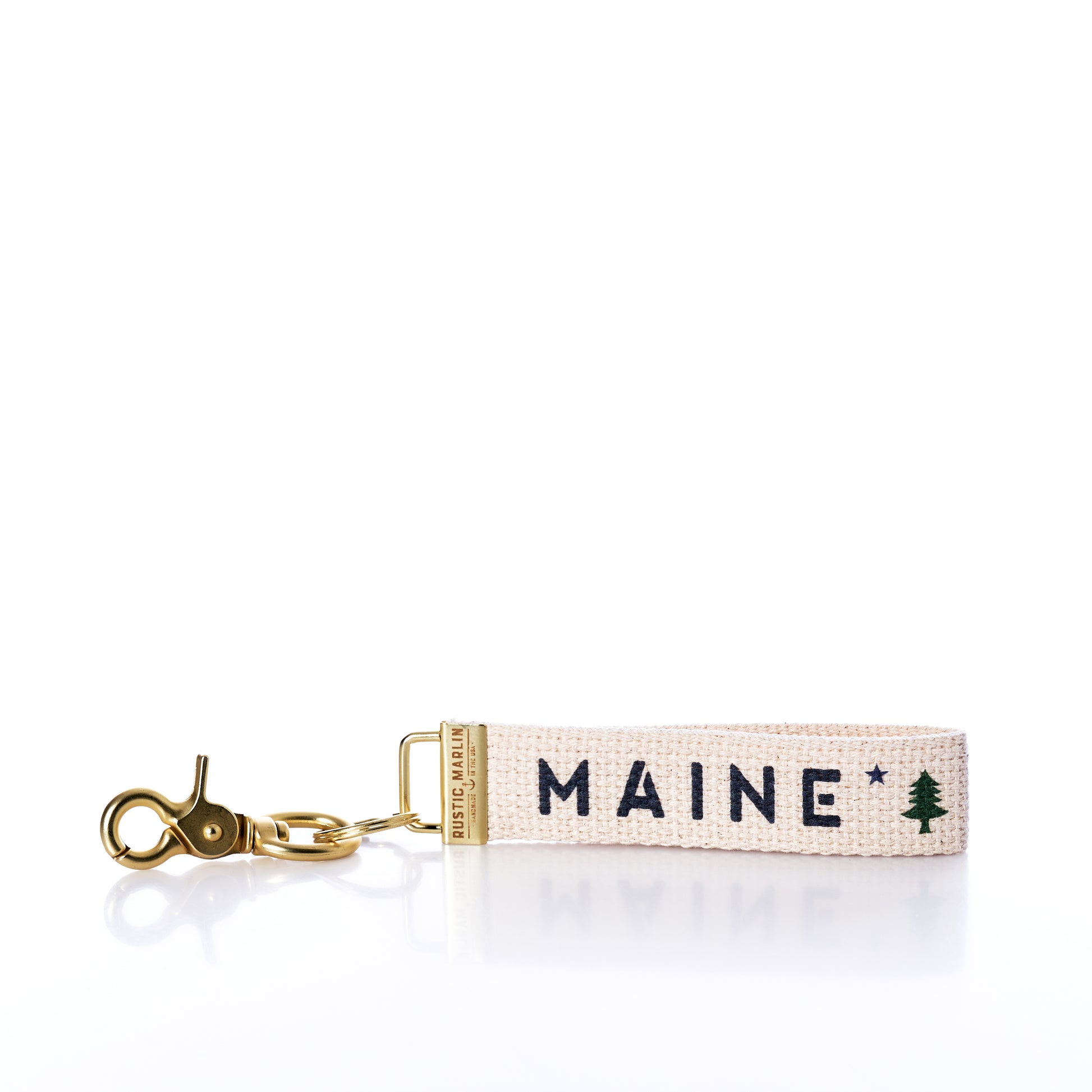 Bring playful maritime character and a touch of Maine pride to any bag with the Maine Pine Tree key ring, made from sturdy canvas and a brass key clip. The handy clip attaches to belt loops and straps to keep your utility items close at hand. This bag charm is a perfect souvenir to remember a trip to the Pine Tree State.