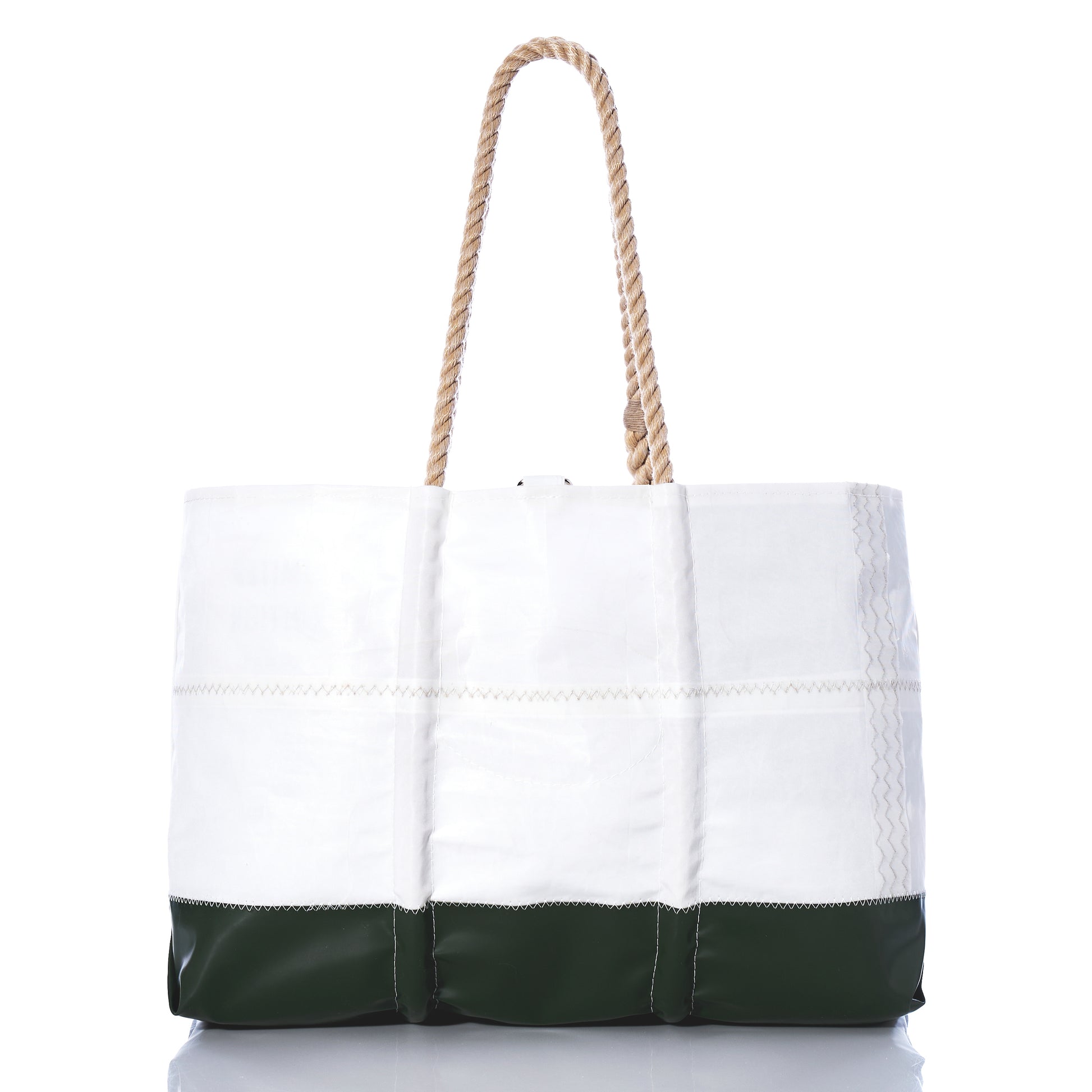 We have teamed up with a fellow Maine-based sustainability company to bring you an ultra-durable ocean-inspired tote, made from recycled materials. We’ve combined our signature recycled sail cloth with Rugged Seas’ recycled fisherman’s bib material to craft a bag ready to take on your toughest tasks. Finished with hand-spliced hemp rope handles, a clasp closure, and a hanging zipper pocket, this limited-edition dark green bib tote is a collectible you won’t be afraid to use every day. Each bag in this Series 1 collection features a signature hangtag from recycled materials, an exclusive series 1 patch, and a trap tag from a Maine lobster fisherman.